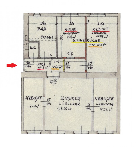 - drei Zimmer bzw. Kabinette
